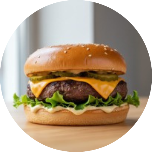 Seasoned fresh beef patty, American cheese, gherkins, lettuce, house sauce, and potato brioche bun