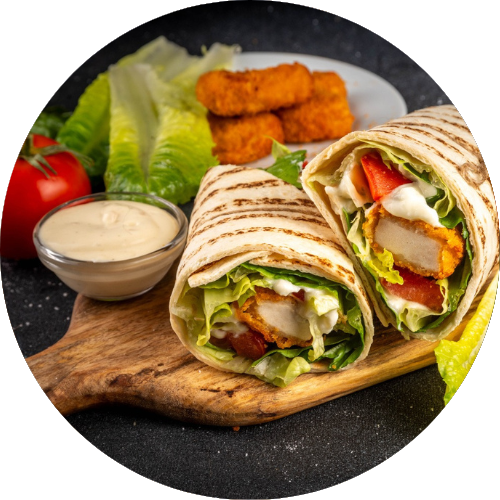 £8.49Crispy chicken, lettuce, red onion, and chilli sauce wrapped in soft tortilla