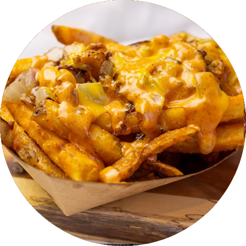 1 Seasoned fresh beef patty, American cheese, caramelized onion, lettuce, gherkins, BBQ sauce, and turkey bacon